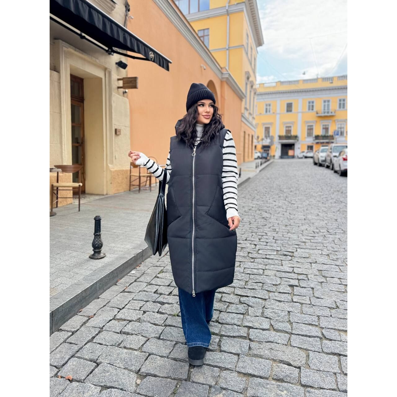 Жилет имеет форму бочонка, карманы глубокие и удобные!
