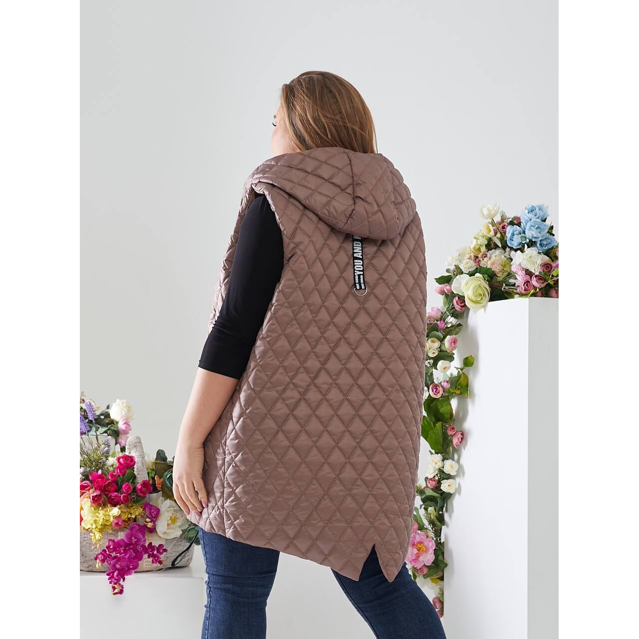 Стильная стеганная жилетка с накладными карманами, удобный глубокий капюшон, качественная фурнитура.