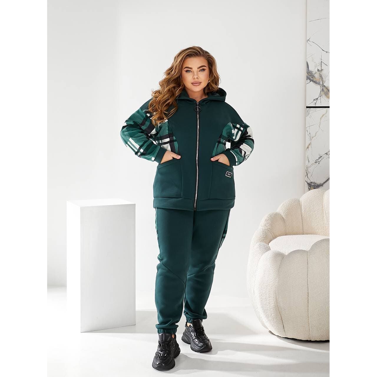 Кофта вільного крою зі вставками клітинки, зручний глибокий капюшон, кишені