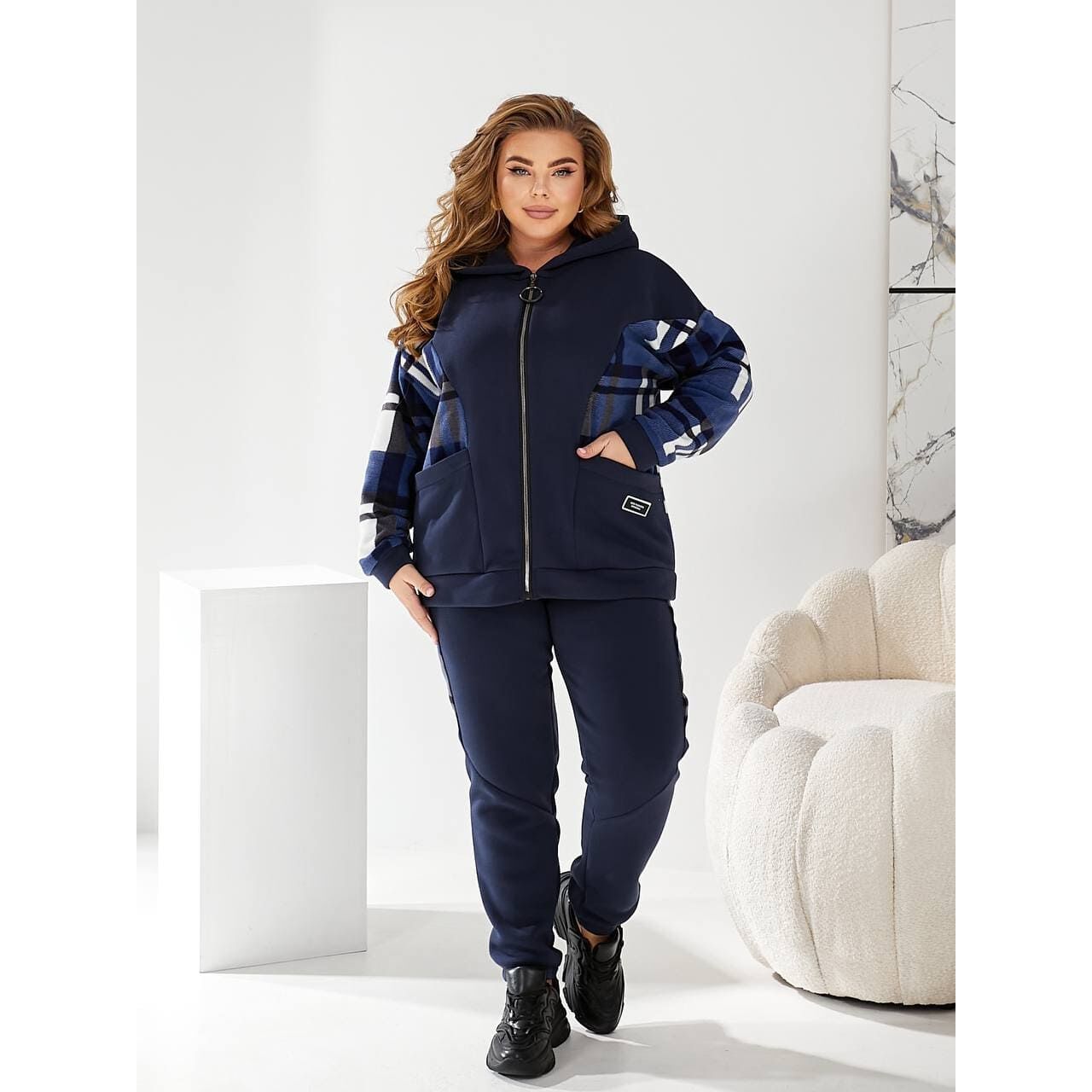 Кофта вільного крою зі вставками клітинки, зручний глибокий капюшон, кишені