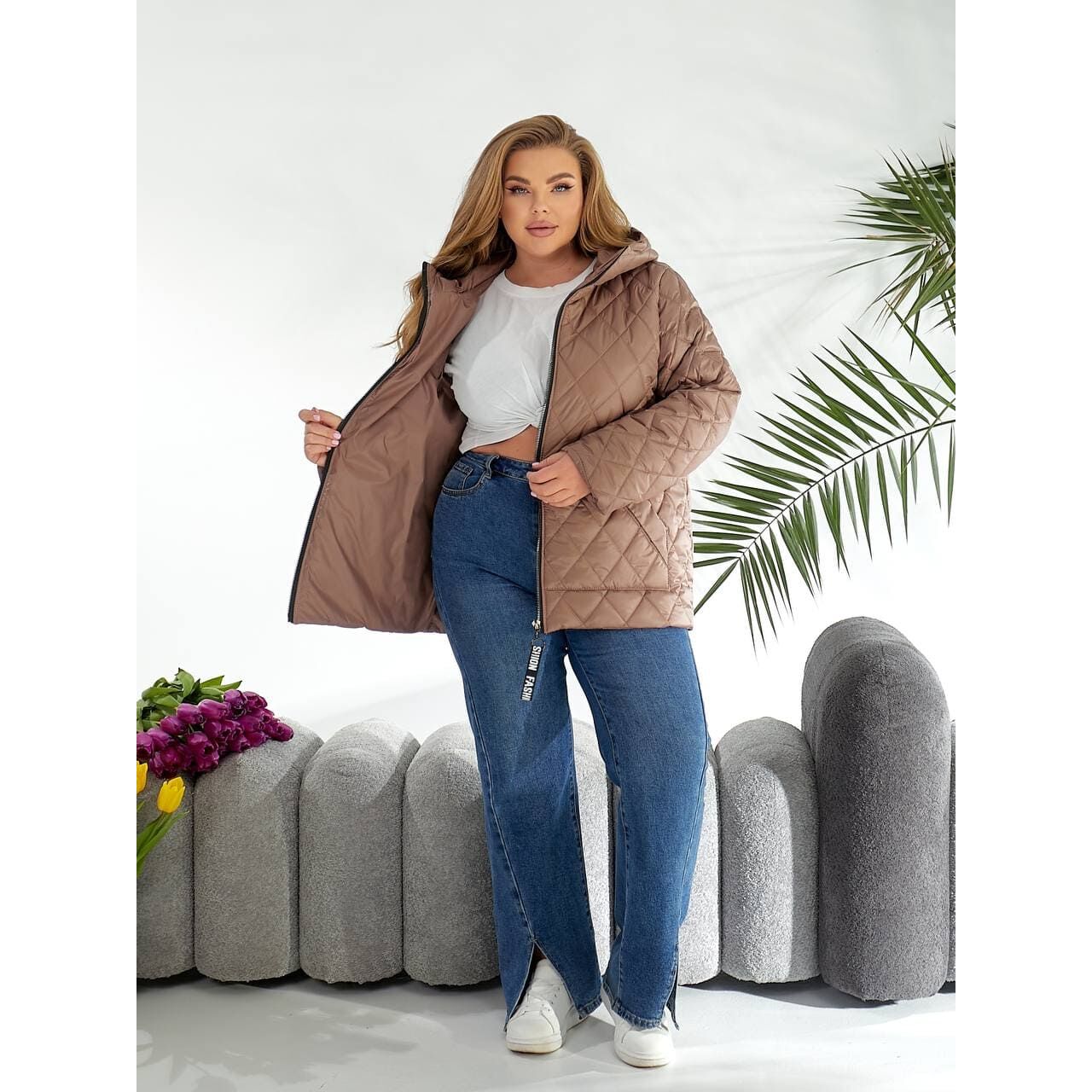 Стильная стеганая куртка подойдет на сезон весна - осень, удобный глубокий капюшон, карманы, змейка на кармане не рабочая