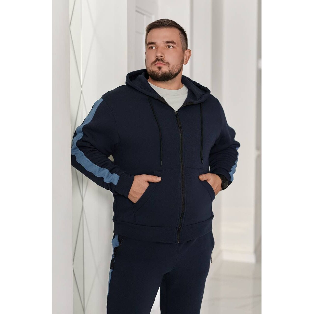 Мужской теплый костюм на флисе синего цвета