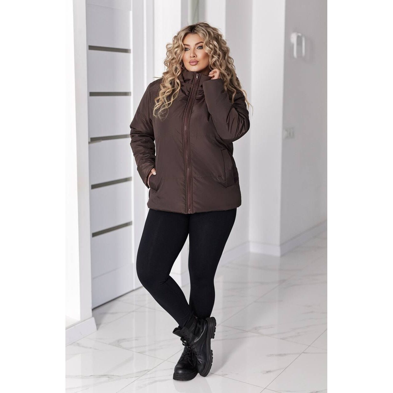 Женская демисезонная куртка цвета шоколад