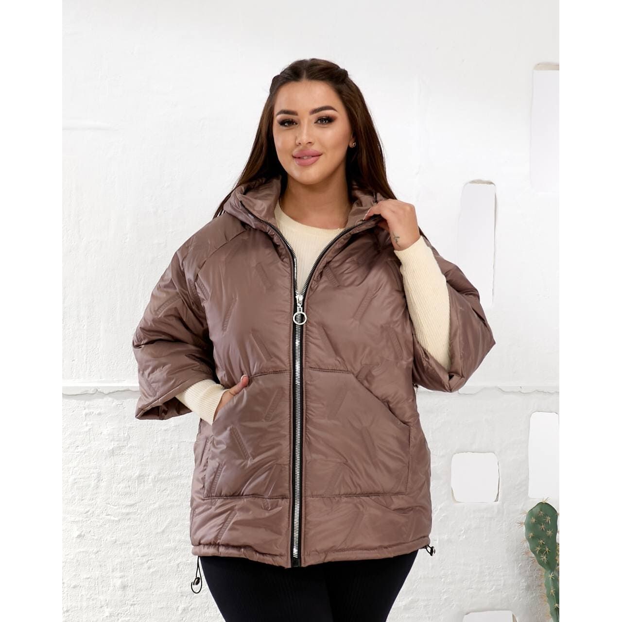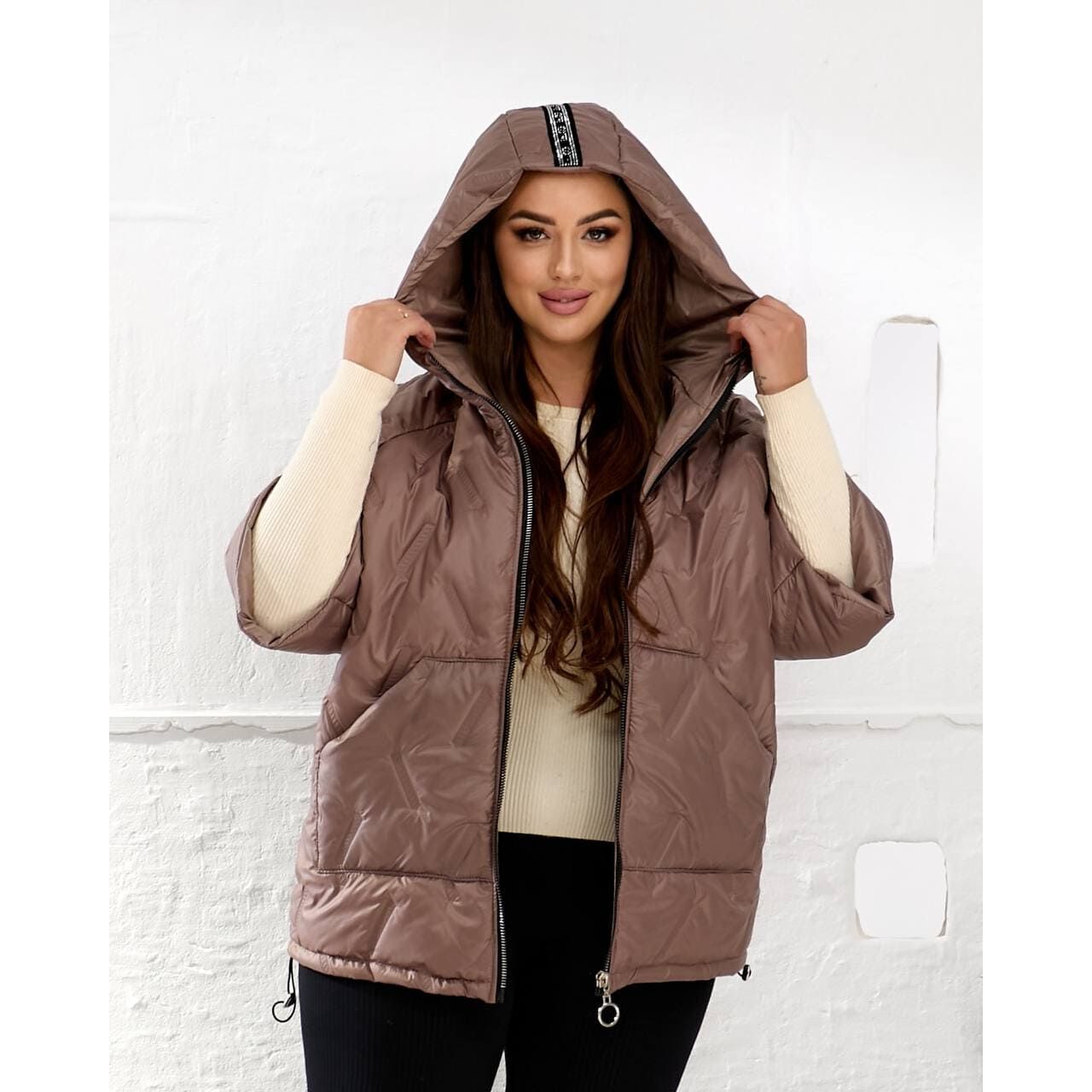 Женский теплый жилет с рукавами 3/4 цвет мокко