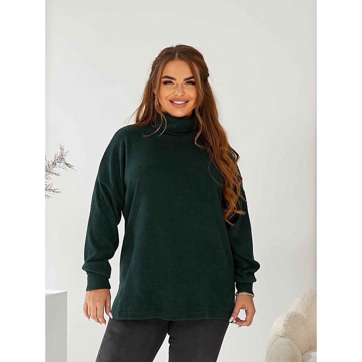 Свитер с высоким горлом, выполненный из качественной ангоры, ткань имеет красивую фактуру соты, хорошо тянется и мягкая на ощупь.