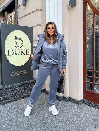 - Велюровые костюмы двойка - штаны с кофтой на молнии или без застежек, дополненные капюшонами и достаточным количеством карманов.