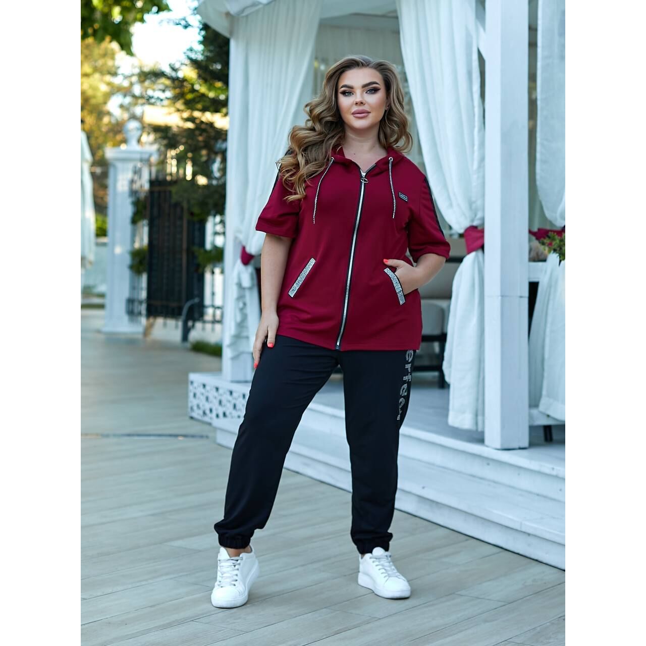 Женский прогулочный костюм двойка цвет бордовый